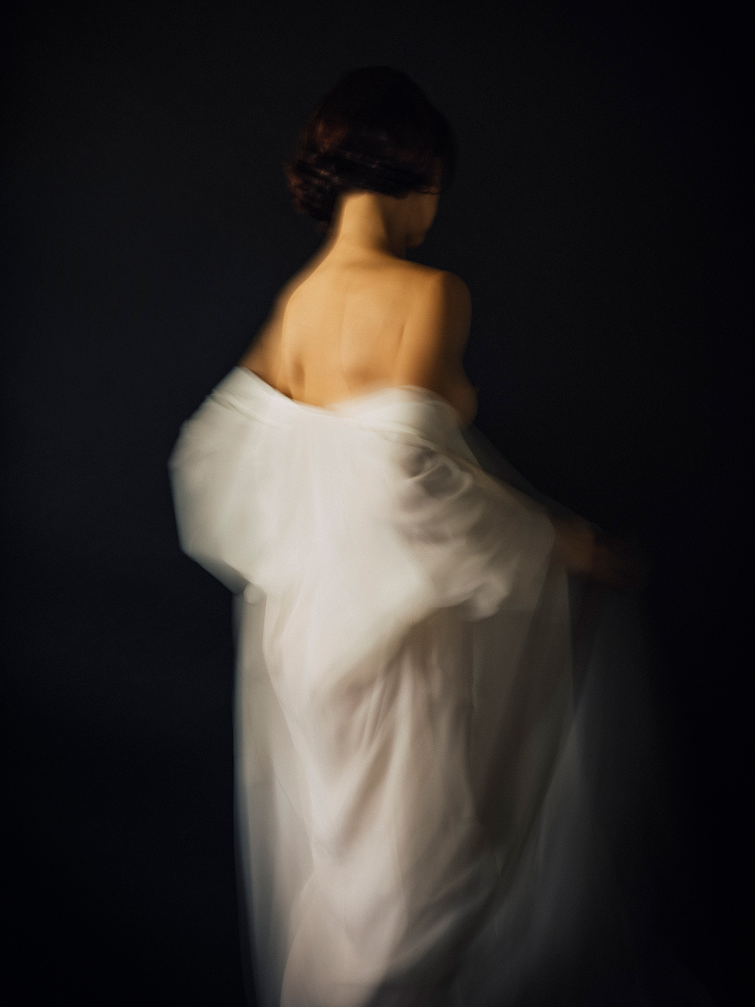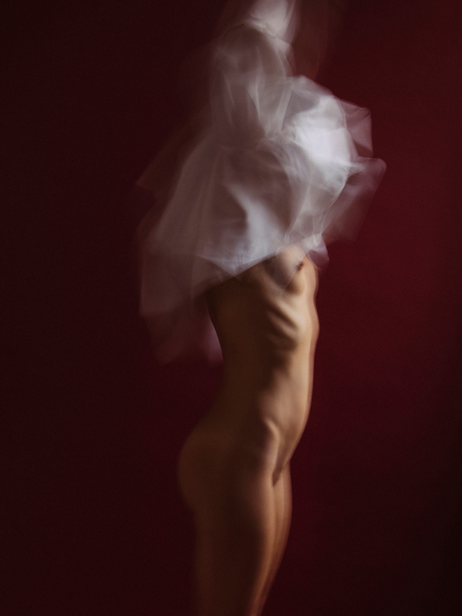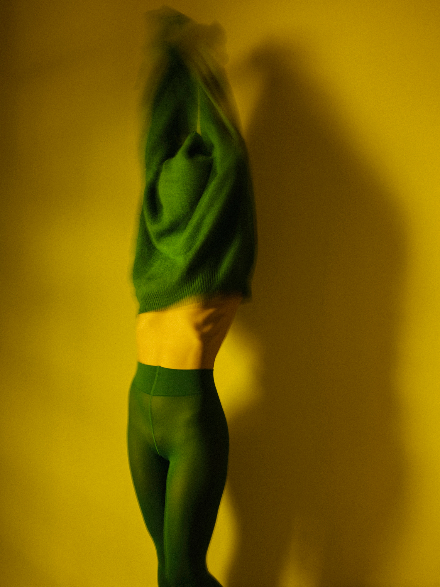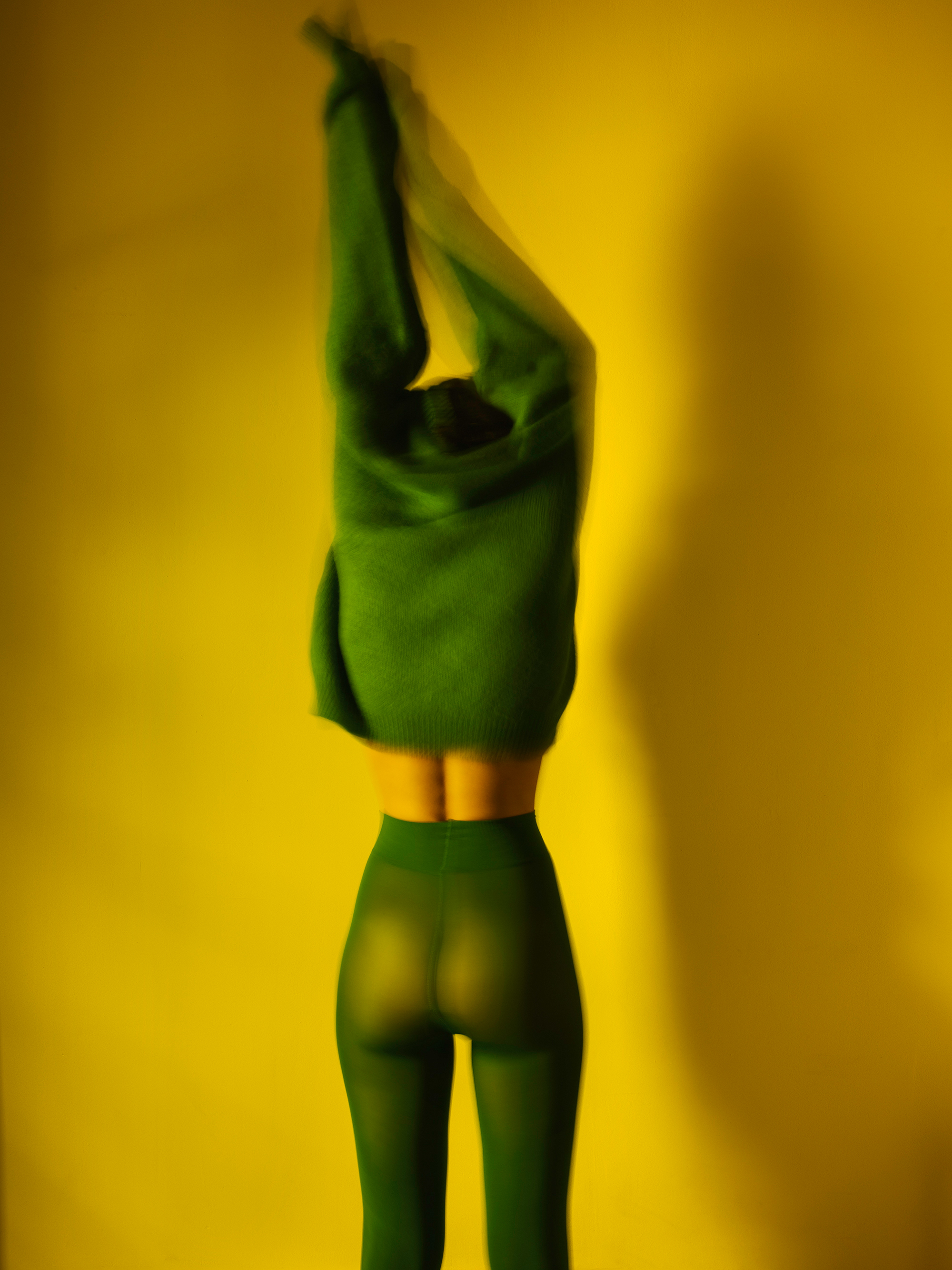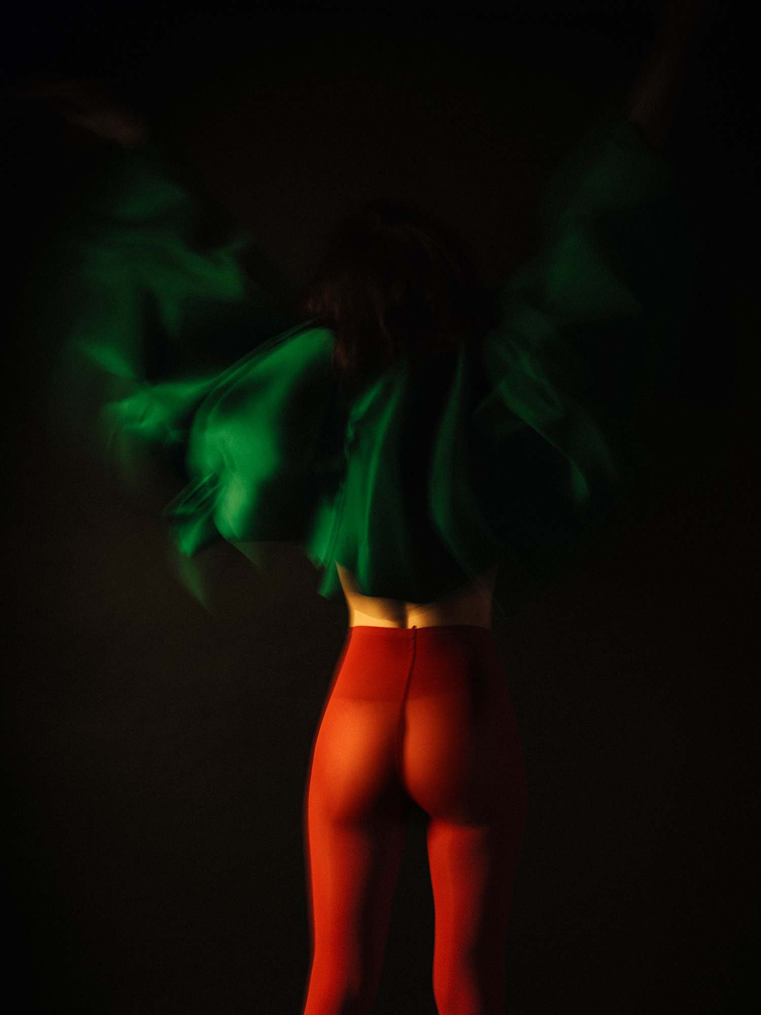 This series of images testify the existence of the woman next door. Character that in appearance coincides with the artist. Undoubtedly, the body is the same; the gestures, for the most part too. And I say “the most part”, because the woman next door has particular gestures that only belong to her. Like the quick way that she pulls the hair. Or the singular capacity to expand the arms, shake colors. Or the insistent way in which she hides her face from us. The woman next door likes to wander uninhabited, empty spaces. As if she needed to get rid of everything accesory. Become lighter. She has her own entity and personality, and I have only tried to photograph her.